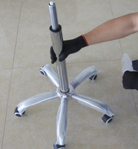 1、將伸縮桿插入五星腳的內孔中(如下圖)。