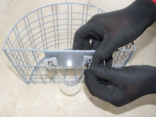 3、將儲物筐套在伸縮桿上并固定好(如下圖)。