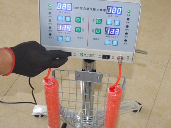 8、將止血儀袖帶連接到螺旋管的另外一端(如下圖)。